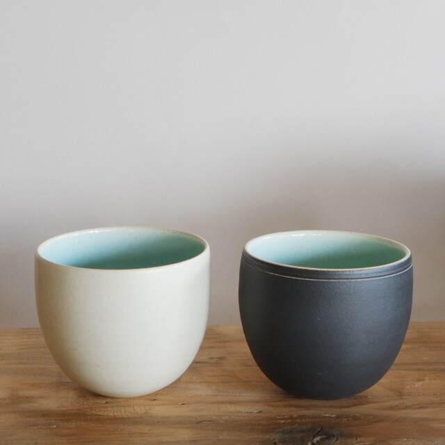 シンプルな側面と、内側のきれいなブルーが特徴的な「ホ・オポノポノ」幸せカップペアと